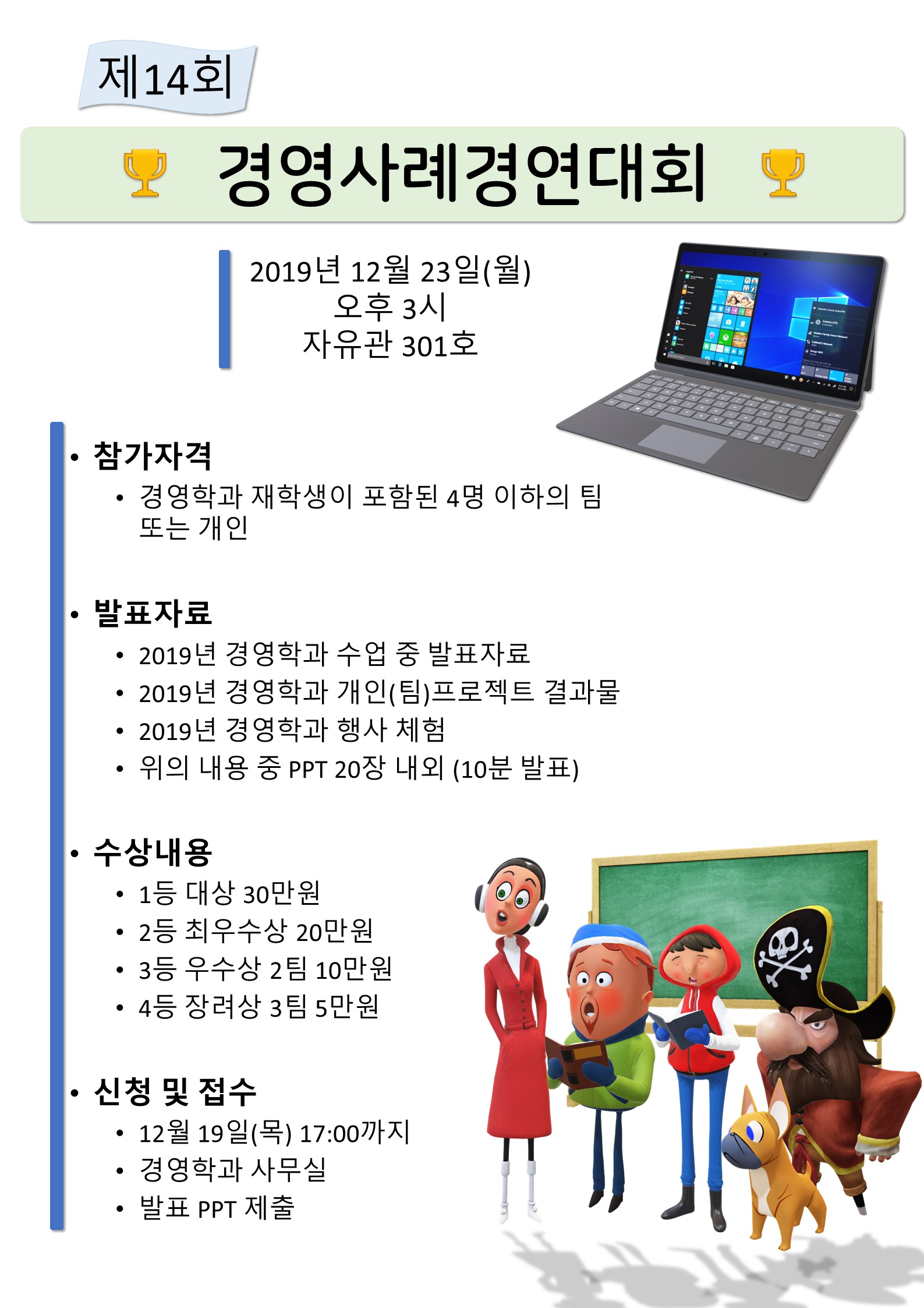 | 4 | 경영학과 행사 포스터 | 이기훈 | 19-10-16 | 1122 |